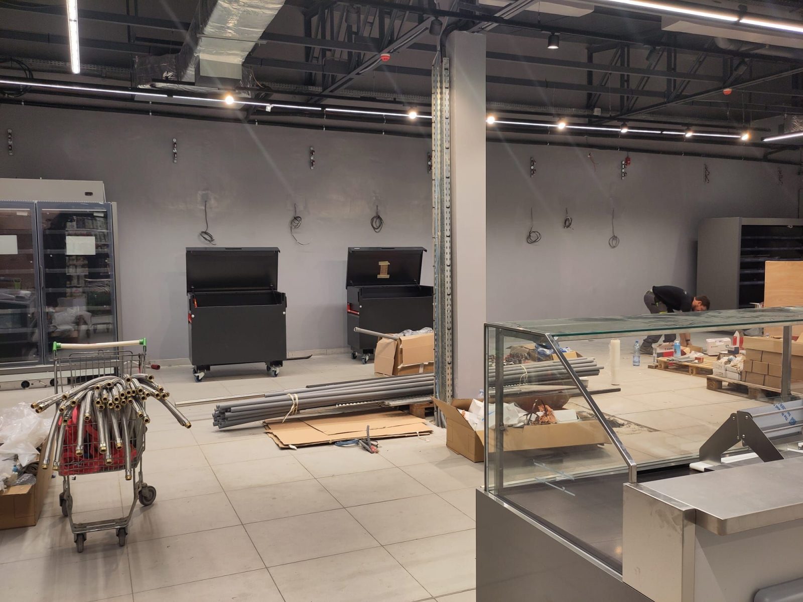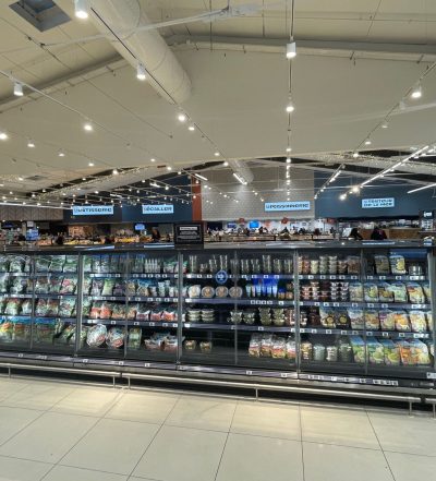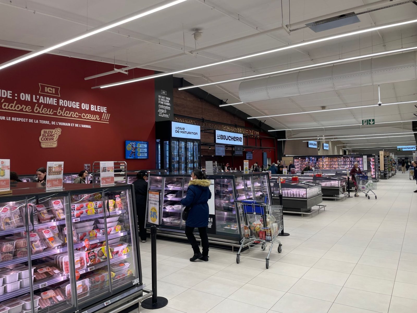 Après plusieurs semaines de chantier, les finitions avancent dans le magasin. La grande chambre froide est maintenant en service et les étagères commencent à se garnir des premières marchandises.